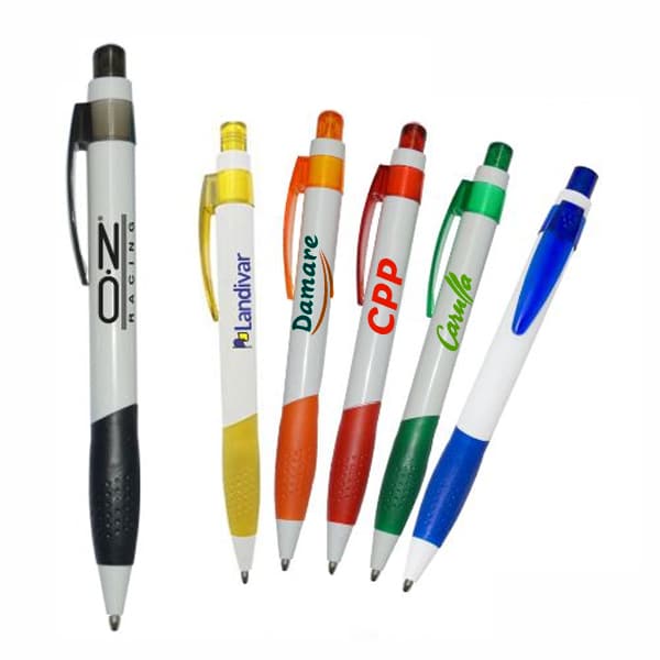 Lapicero publicitario plástico con metal, retráctil y diseño moderno.